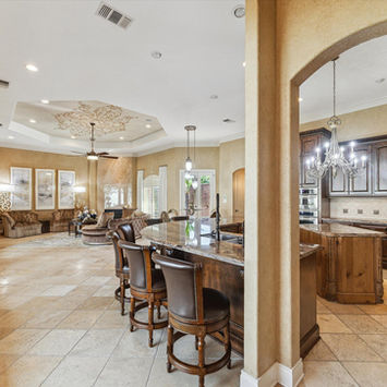 Welcome to this stunning French-inspired residence nestled within The Villas, an exclusive gated community featuring only 14 custom-built homes. Crafted by renowned builders Steve Fuqua and Dan Roth, this exquisite home encompasses 5,542 square feet of elegant living space on a generous 9,571 square foot lot, artfully combining traditional architectural charm with contemporary luxury.